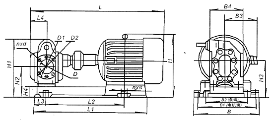 型號 | L | L1 | L2 | L3 | L4 | n×φ | H | H1 | H2 | H3 | H4 | B | B1 | B2 | B3 | B4 | D | D1 | D2 | n×d | 重量 Weight(kg) |
