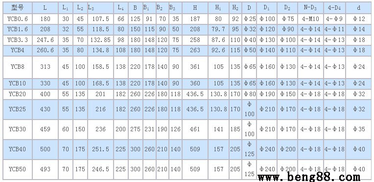 YCB圓弧齒輪泵的安裝尺寸-YCB圓弧齒輪油泵的安裝尺寸-YCB圓弧泵的安裝尺寸