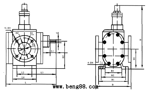 YCB圓弧齒輪泵的安裝尺寸